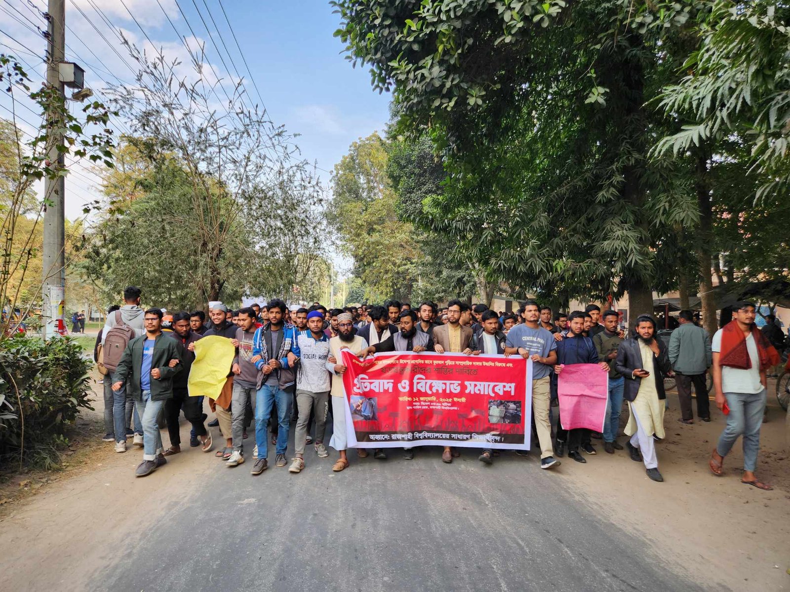 পরে বিক্ষোভ মিছিলটি ক্যাম্পাসের বিভিন্ন সড়ক প্রদক্ষিণ করে। শিক্ষার্থীরা "আল কোরআনের অপমান সইবে না মুসলমান", "নারায়ে তাকবির আল্লাহু