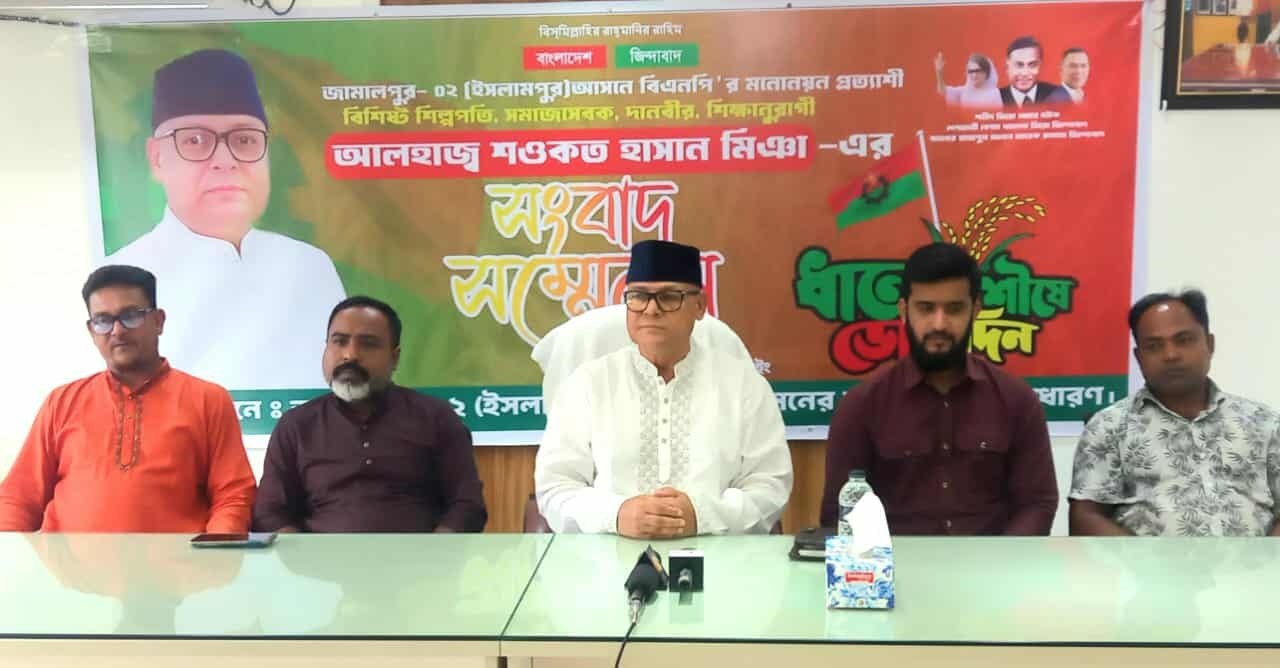সমাজসেবক ও শিক্ষানুরাগী, শিল্পপতি আলহাজ্ব শওকত হাসান মিঞা জামালপুর-২ ইসলামপুর আসনে বিএনপির মনোনয়নের জন্য সংবাদ সম্মেলন করেছেন।